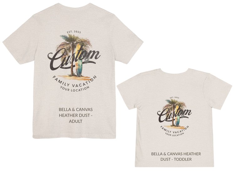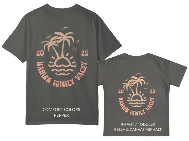 Order kids & adult shirts in Comfort Colors and infant & toddler shirts in a near matching Bella & Canvas color.